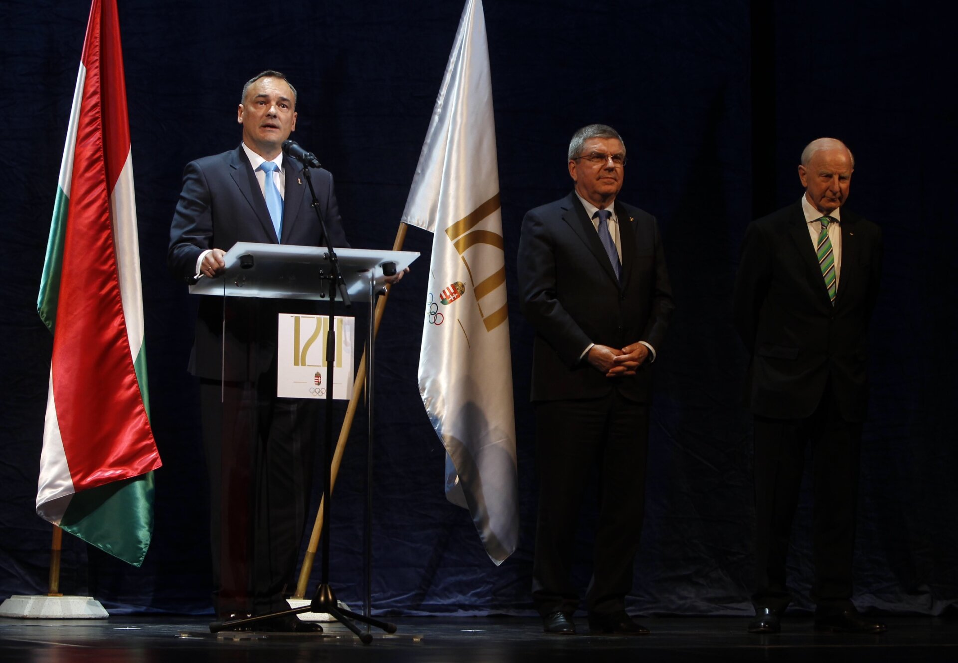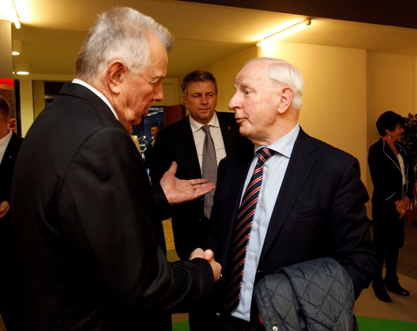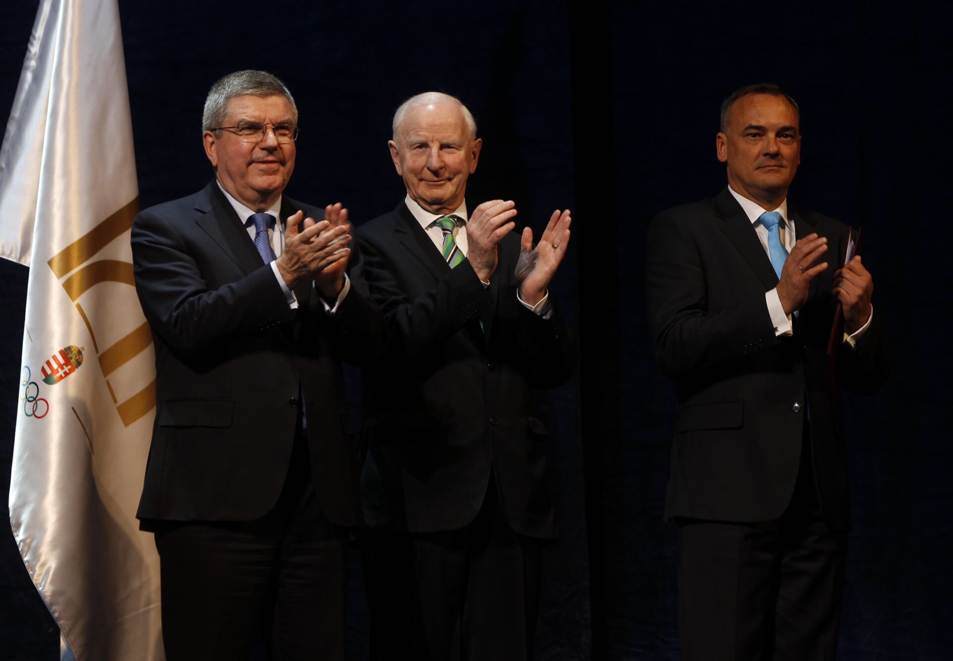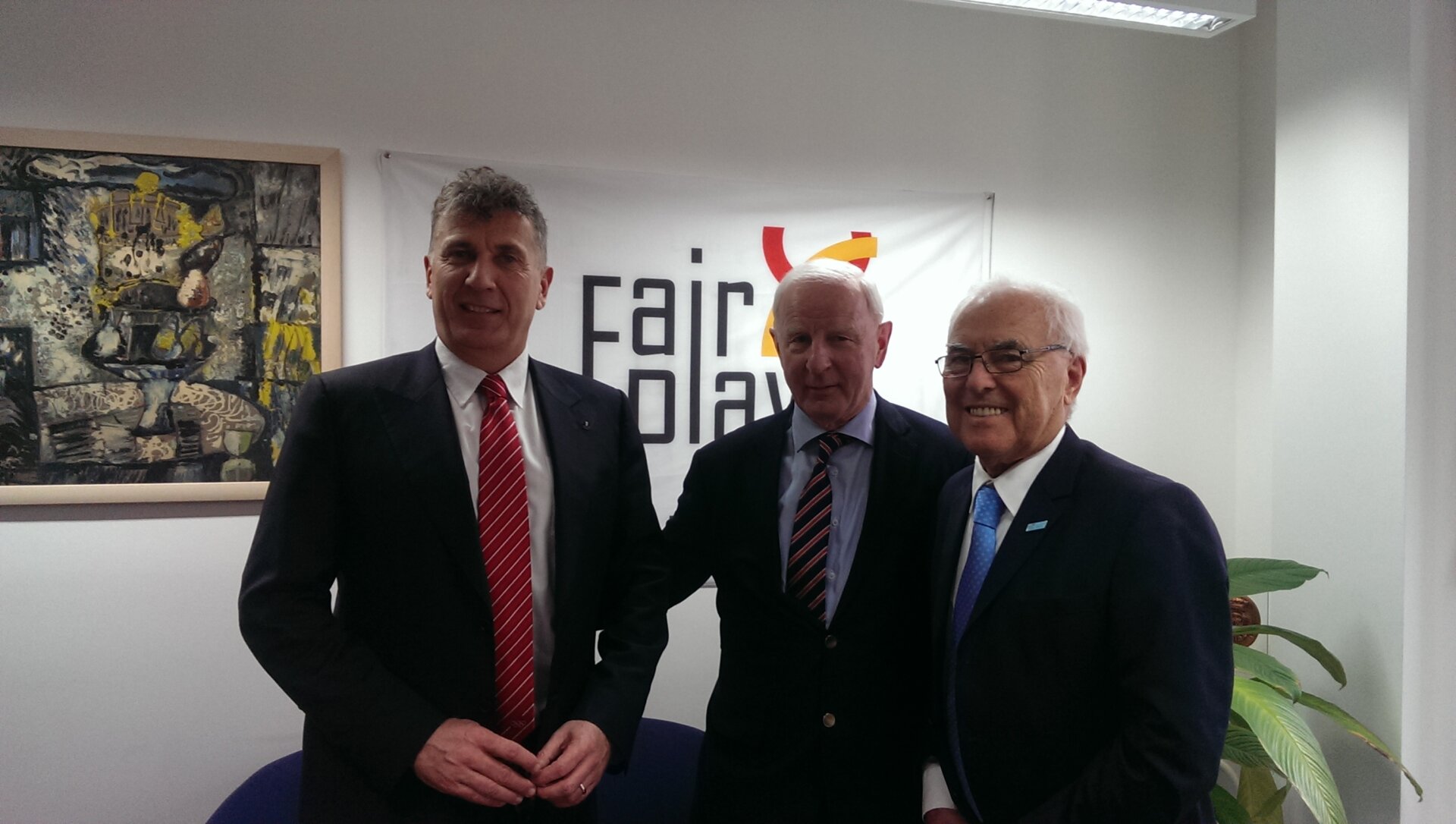 From left to right Bence Szabo, secretary general of HOC, Pat, Jeno Kamuti, President of International Fair Play Committee.