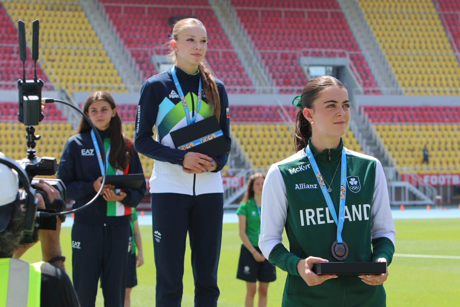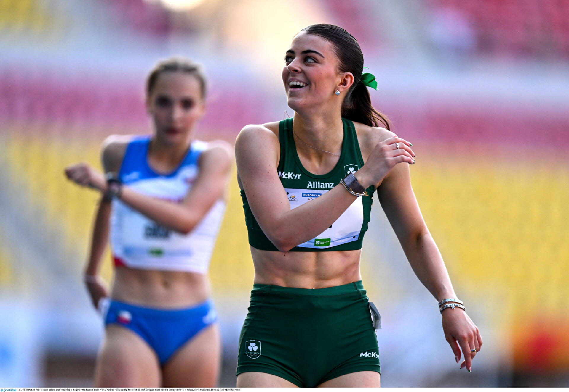 Tuesday got off to a blistering start for Team Ireland in Skopje, with a fantastic bronze medal from Donegal’s Erin Friel in the 400m. Running a PB time of 54.02, a medal was never in doubt. Speaking after the race, a buzzing Friel said,