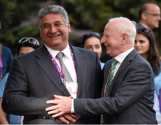 Hickey at Athlete’s Welcome Ceremony EOC President Pat Hickey addressed athletes at the Team Welcome Ceremony in the Athletes Village ahead of the 2015 European Games in Baku, Azerbaijan this evening. He was joined by Mr Azad Rahimov, Minister of Sports for Azebaijan.