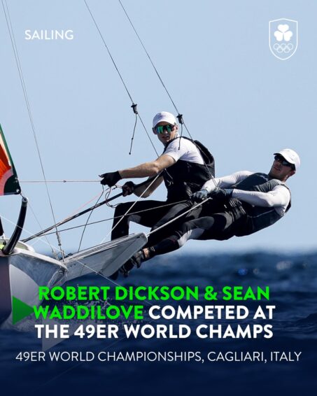 On the water, Sean Waddilove and Robert Dickson are competing at the 49er World Championships, continuing their strong campaign as one of Ireland’s leading sailing duos.