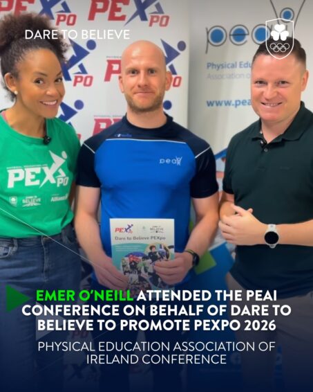 Emer O’Neill represented Team Ireland’s Dare to Believe programme at the PEAI Conference, presenting on the PEXpoinitiative which celebrates creativity and innovation in physical education and sport among students nationwide.