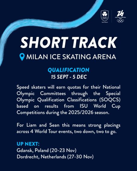 Qualification is based on results from ISU World Cup Competitions during the 2025/2026 season. For Liam and Sean this means strong placings across 4 World Tour events, two down, two to go.