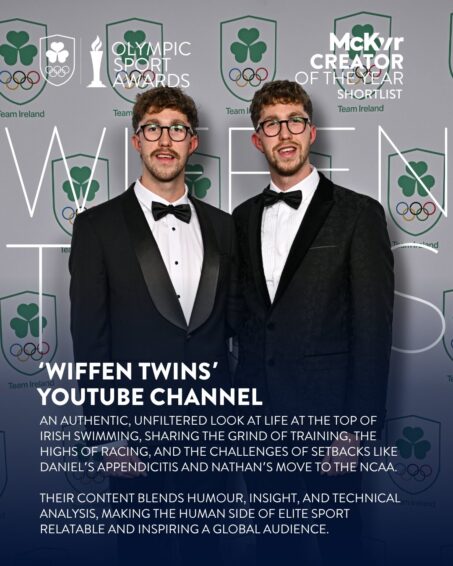 With 94,000 Instagram followers and 67,000 YouTube subscribers, their reach is substantial, connecting fans worldwide and building engagement that elevates Irish swimming. In 2025, Daniel’s world-leading 7:41.52 800m freestyle at the Irish Open, plus record-breaking performances at the Mare Nostrum Swim Tour, reinforced their credibility as athletes, while their storytelling amplifies it. By merging top-level performance with creativity, honesty, and digital innovation, the Wiffen Twins have set a new standard for athlete-led content and inspired the next generation, embodying the spirit of the Creator of the Year Award.