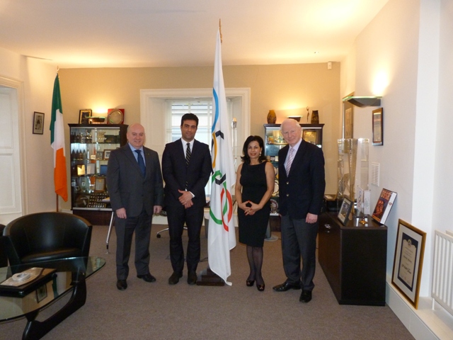 They met with our President – Pat Hickey and Executive Committee Member, and Chef de Mission for Rio 2016 – Kevin Kilty along with our CEO – Stephen Martin. The meeting was to discuss preparations for the Rio 2016 Olympic Games and the pre-training camp to be held in Uberlandia, Minas Gerais State of Brazil. The OCI will be liaising closely with the Brazilian Embassy between now the Rio 2016.