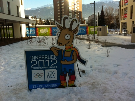 I competed in my first race at the Youth Olympics today; it was the GS and I finished in 34th place (out of 55 racers). I was really pleased with my first run where I went from a bib number of 42 to 37th place. My second run, however, was not as good. Unfortunately, I think my lack of experience of the race piste, relative to the vast majority of the other girls, did not help me. Lots of people have asked me why I didn’t do the Super G or Super Combined events at the weekend; thinking that I had chosen not to race in them. In actual fact the Snowsports Association of Ireland had set a points criteria in Super G of 120 and, since my points are higher, I was not entered. Having watched the races, I think I would have performed reasonably well in those races and I think that the experience of the race piste would have been beneficial for today’s race. I was very pleased to have several members of the Olympic Council of Ireland come to watch me race. The result of the race was: Gold: Clara DIrez (France). Silver: Estelle Alphand (France). Bronze: Jasmina Suter (Switzerland). So it was a very good day for the French! This evening, I went with Lynn and Jim to watch the medals ceremony and to see tonight’s band. I also got to see my Grandfather who arrived in Innsbruck today to watch me race. Lynn and I will be on the bus to Patscherkofel at 7.15am tomorrow for Slalom training in preparation for Friday’s race.